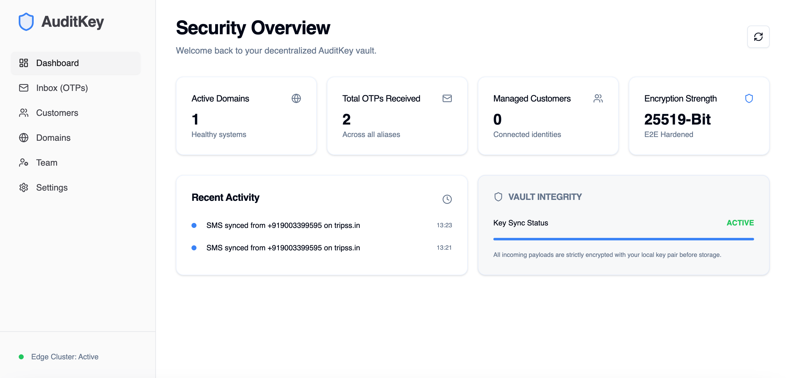 E2EE Security Vault for OTPs & Messages